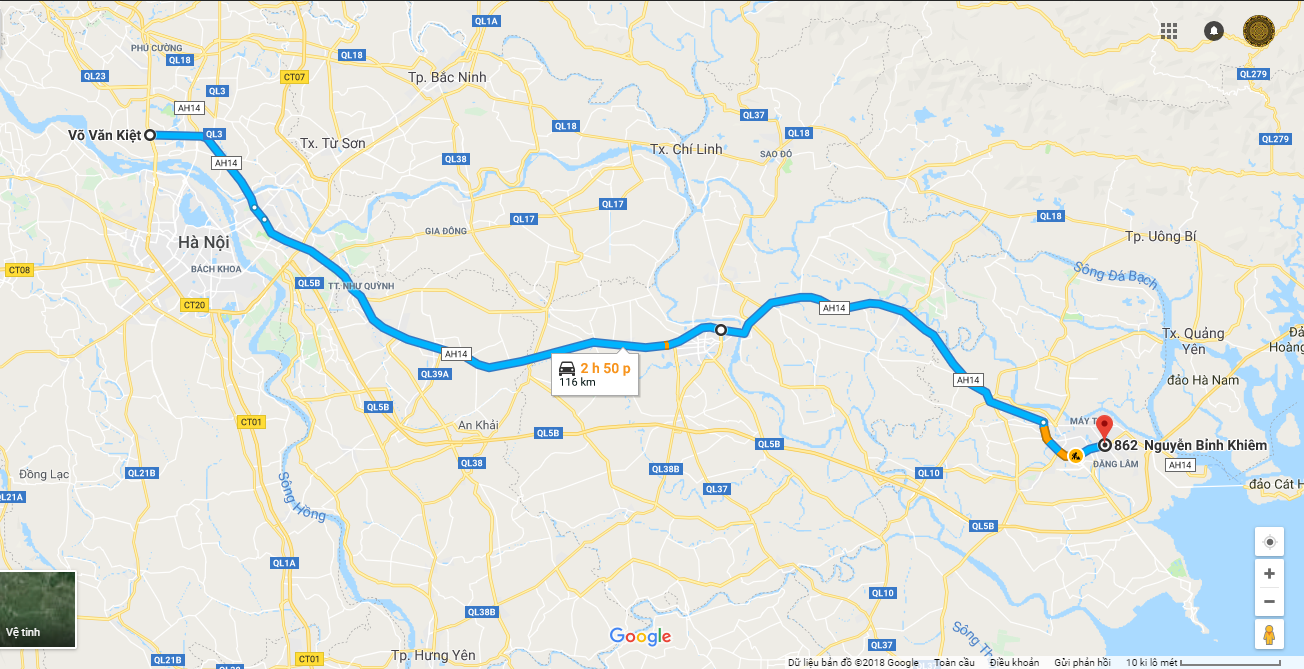 Đông Anh - Long Biên - Gia Lâm - Văn Lâm - Yên Mỹ - Mỹ Hào (Hưng Yên) - Cẩm Giàng - Tp Hải Dương - Nam Sách - Kim Thành (Hải Dương) - An Dương - Hồng Bàng - Hải An (Hải Phòng)