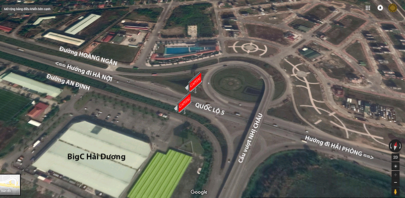 Hệ thống 2 biển quảng cáo cỡ lớn tại điểm cột mốc H5/54 gần cầu vượt Nhị Châu Hải Dương. là hệ thống biển quáng cáo duy nhất tại Việt Nam được cấp phép xây dựng tại dải phân cách giữa đường.