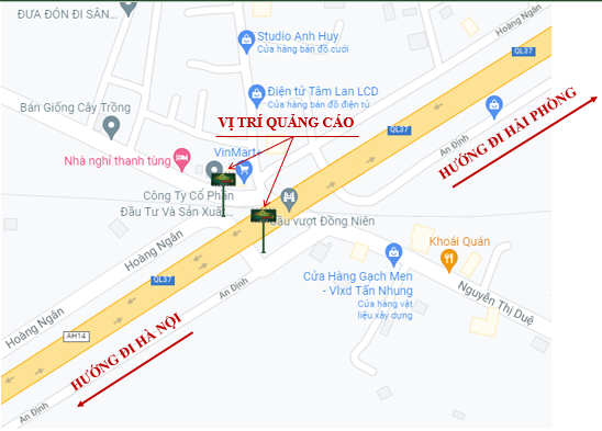 Nằm trong hệ thống biển tầm cao của Thủ Đô ADV, vị trí biển quảng cáo nằm tại cột mốc km49+200 thuộc quốc lộ 5, 2 biển quảng cáo đặt hai bên trái và bên phải đường quốc lộ 5, tại điểm đầu cầu vượt Đồng Niên hướng từ Hà Nội đi Hải Phòng thuộc địa phận phường Việt Hòa, thành phố Hải Dương, tỉnh Hải Dương. Vị trí quảng cáo có lợi thế đổ dốc cầu Đồng Niên và đặt gần các khu công nghiệp, nhà máy, khu đô thị nên tầm nhìn và lưu lượng giao thông rất cao và tầm nhìn tốt.