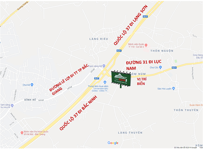 -Vị trí biển: Nằm trên QL 1A đoạn ngã tư Kế - Bắc Giang, bên tay phải hướng Hà Nội đi Lạng Sơn. Đây là trục đường chính nối Hà Nội - Bắc Ninh - Bắc Giang - Lạng Sơn. Nằm tại khu vực tập trung các khu công nghiệp của tỉnh Bắc Giang, là điểm cửa ngõ phía Tây Nam dẫn vào thành phố Bắc Giang