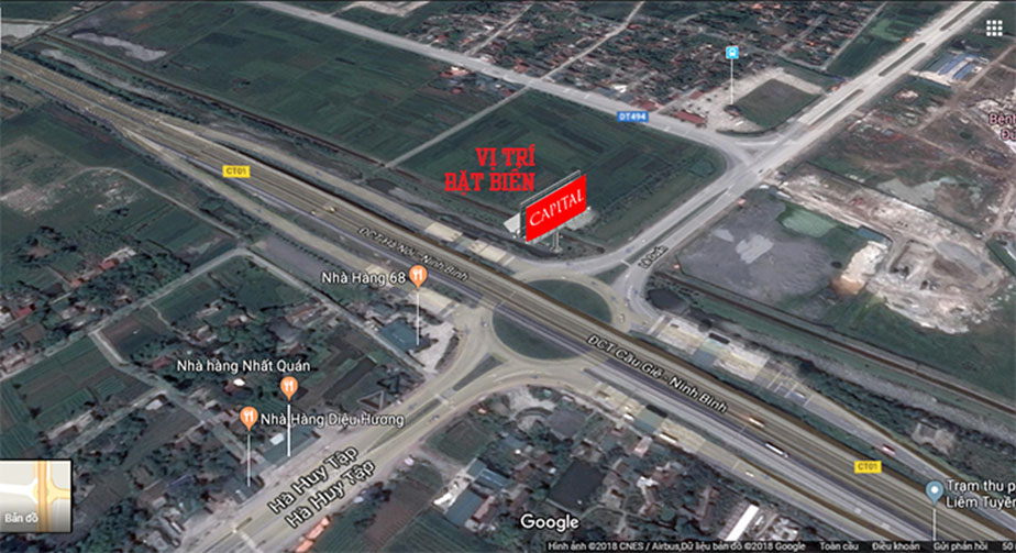 -Vị trí biển: Nằm tại nút giao Liêm Tuyền trên tuyến cao tốc Cầu Giẽ Ninh Bình đoạn giao với quốc lộ 21b gần trạm thu phí Liêm Tuyền và đường vào thành phố Phủ Lý – QL1A - tỉnh Hà Nam.